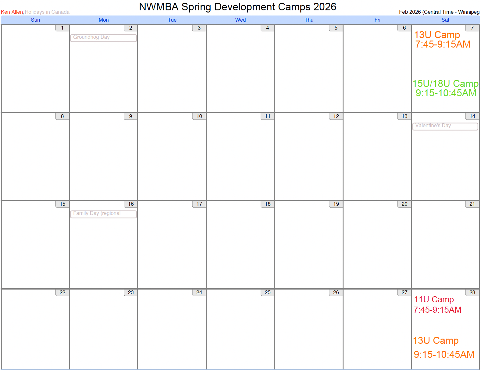 NWMBA is pleased to offer spring training and development camps open to all players born between 2008 and 2021. There is limited space in each age group; therefore, early registration is recommended! Please see links below for sign up:
